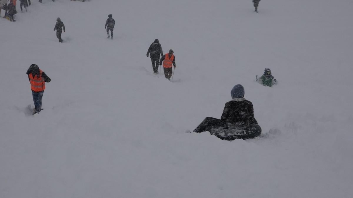 Öte yandan yarışların olduğu zirveye ulaşmak isteyip de yoğun kar yağışı nedeniyle yolda kalan vatandaşlar nedeniyle yol zaman zaman kapandı. Uzun süre beklemek zorunda kalan vatandaşlar araçlarından inerek çalan türküler eşliğinde horon halkaları oluşturdu.