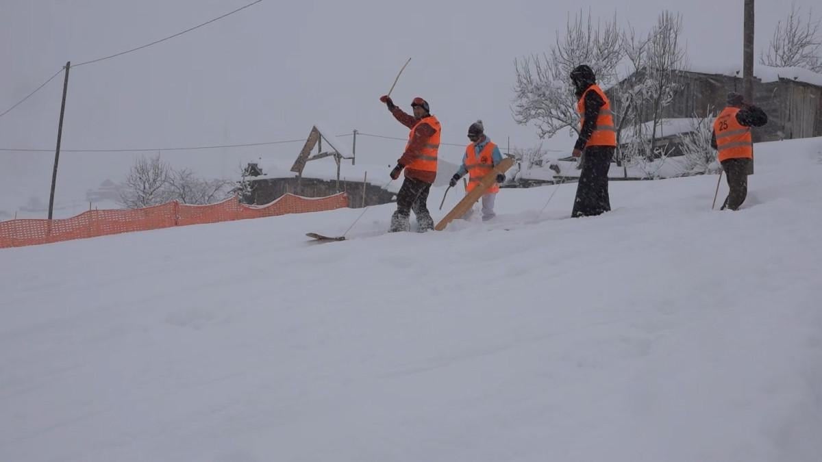 Öncesinde hazırladıkları ve ismine ‘Uzme tahtası' (Yüzme tahtası) adını verdikleri kızaklarla kayıt yaptıran yarışmacılar 4'erli guruplar halinde tepeden aşağıya kaydı.