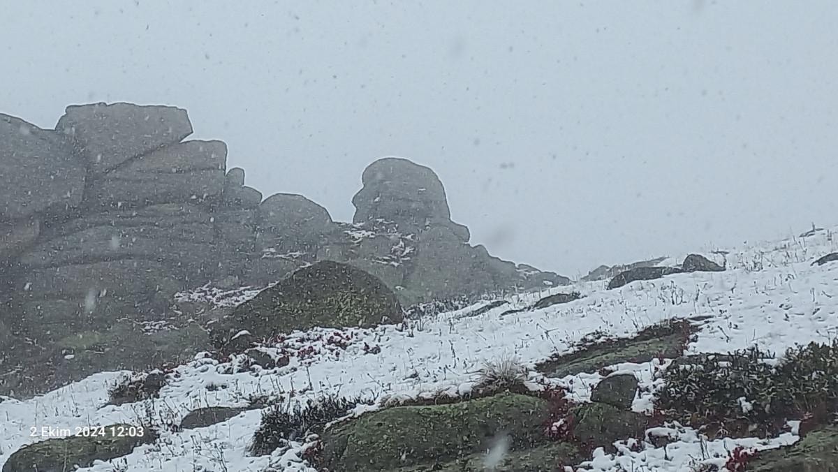 Çamlıhemşin ilçesine yağan kar yağışı nedeniyle dün gece saatlerinde 2 bin 300 rakımlı Yukarı Kavrun Yaylası, Varyemez Yaylası ve Kaçkar Dağı zirvesi beyaz örtüyle kaplandı.