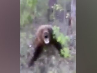 Rusya'nın Uzak Doğu'daki Kamçatka bölgesindeki gözlerden uzak ormanlık alanda, fazla cesaretli bir şahıs, ayıyı yakından görüntülemeye çalıştı.