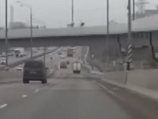 Rusya'nın en büyük şehirlerinden biri olan Moskova'da, bir kaza yaşandı. Motoruyla trafikte ilerleyen sürücü, otoyolun üstündeki köprüye doğru yol aldı.