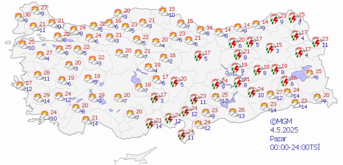 Meteoroloji Genel Müdürlüğü, son hava durumu raporunu yayınladı.