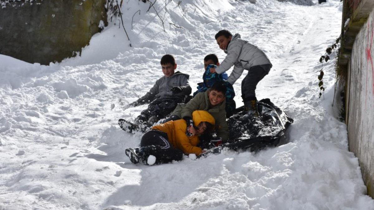 Arkadaşlarıyla birlikte güzel zaman geçirdiklerini belirten Yiğit Ali Sunman, "Arkadaşlarla toplandık, çok eğlendik. Mahallemizde kar var, çok sevinçliyiz. Burada poşetlerle kayarak, kartopu savaşı yaparak eğleniyoruz." dedi.