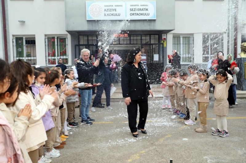 Okul bahçesinde düzenlenen törende Okul Müdürü Serkan Çeliktaş, öğrenciler ve Hatice Berber'in çocukları, Berber'e çiçek takdim ederek teşekkür etti.