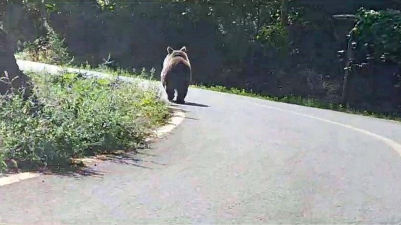 Aksu Mahallesi yolunda seyahat eden vatandaşların güzergahında yola inen bozayı görüntülendi.
