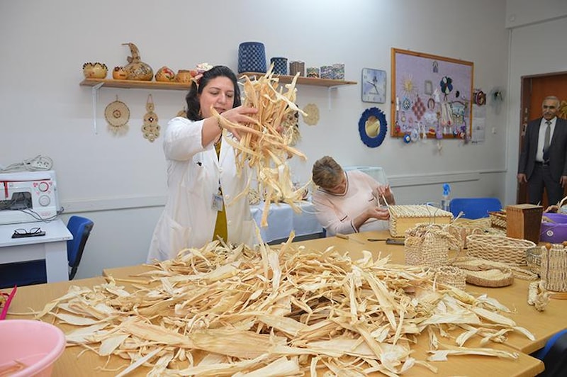 Kursiyer Samiye Yılmaz, hocaları sayesinde mısır kabuğundan ürün yapmayı öğrendiğini dile getirerek, "Gerçekten çok zevkli bir iş. Çanta, şapka, servis altlığı ve hediyelik eşya yapıyoruz." diye konuştu.