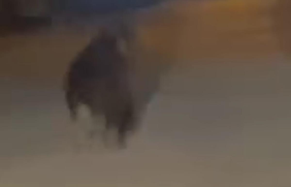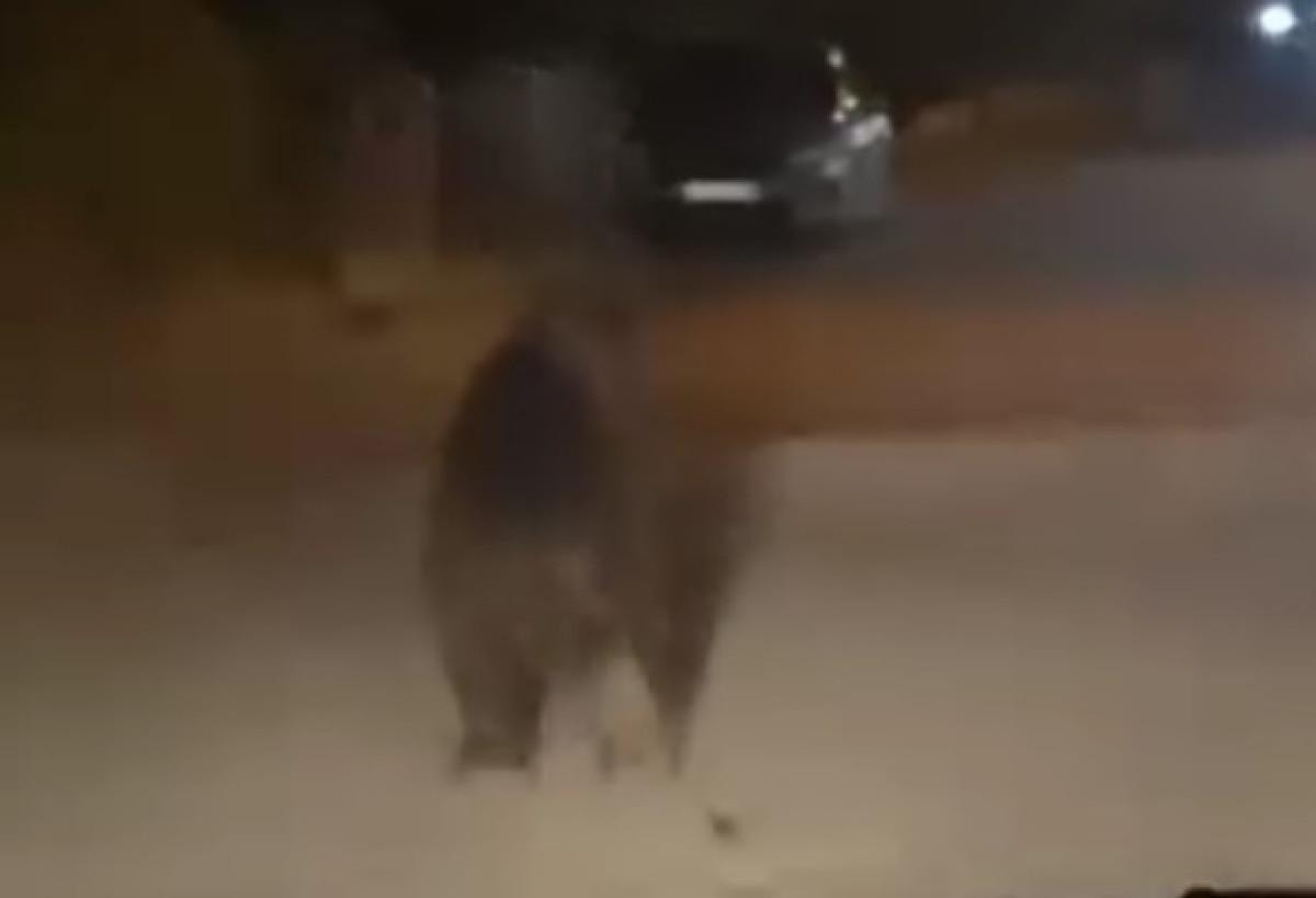 İlçeye bağlı bir mahalleye inen bir ayı, bir sürücü tarafından görüntülendi.
