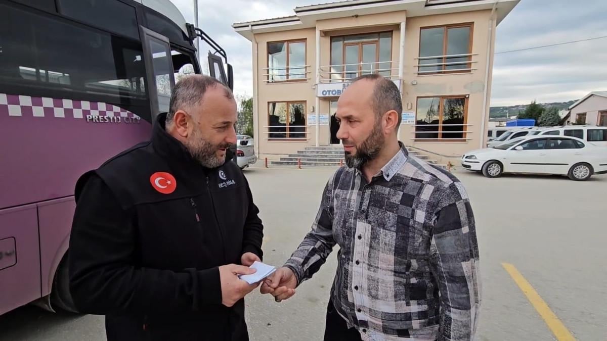 Tufan Yüzücü şu sözleri kullanarak çinde para olan zarfı Beş Hilal Derneği Başkanı İsmail Tiryaki’ye teslim etti: