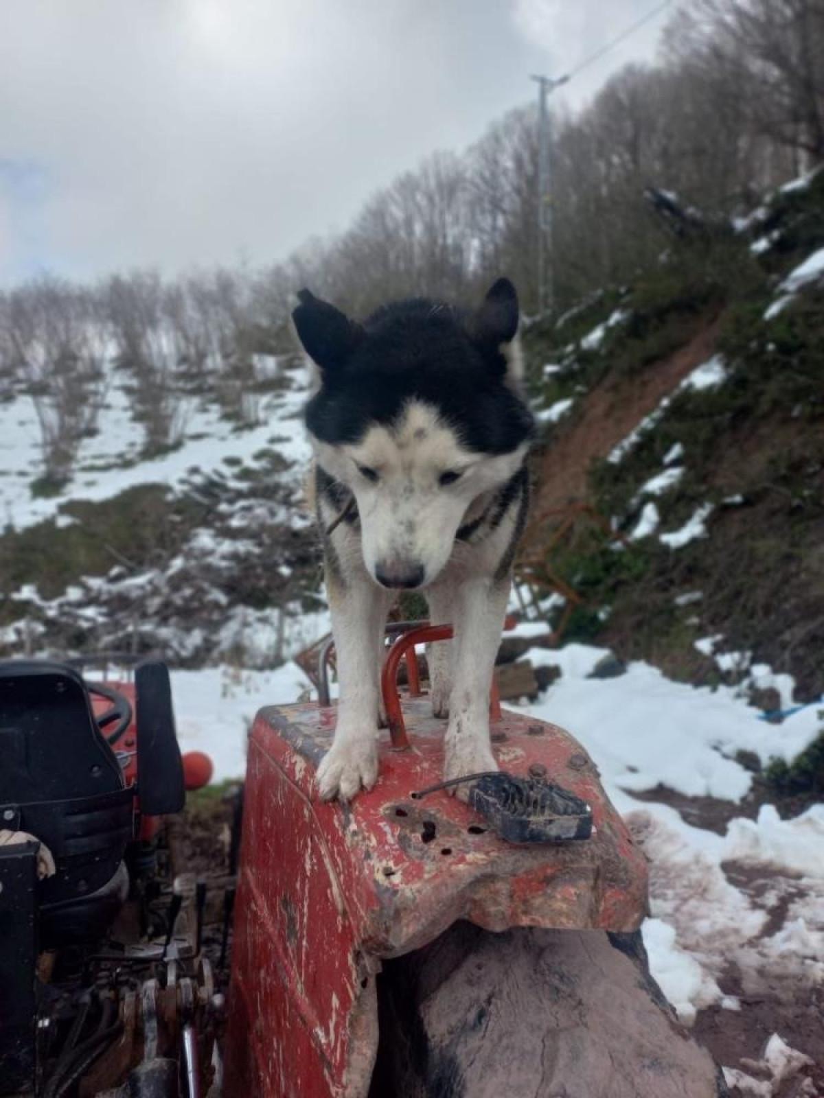 Sakarya'nın Karasu ilçesinde, 'Çakır' adlı sibirya kurdu traktöre olan sevgisiyle dikkat çekiyor.