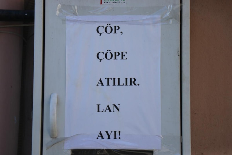 Doğaya ve çevreye saygısı olmayan insanlara tahammülü kalmayan vatandaş, "Çöp çöpe atılır lan ayı" yazılı kağıtları, sokaktaki aydınlatma direklerine ve duvarlara asarak sitem etti.