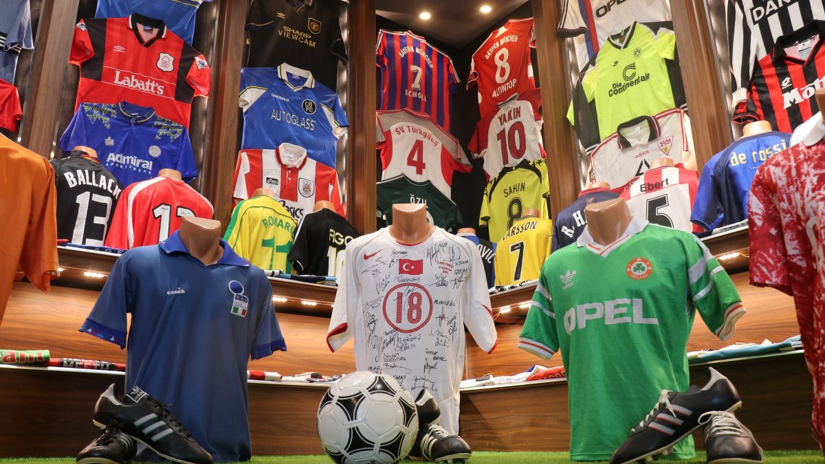 Her gün özenle baktığı formalarını temizleyip kontrollerini yapan Cengiz, dünya takımlarının formalarını 75 metrekare alanda tutuyor.