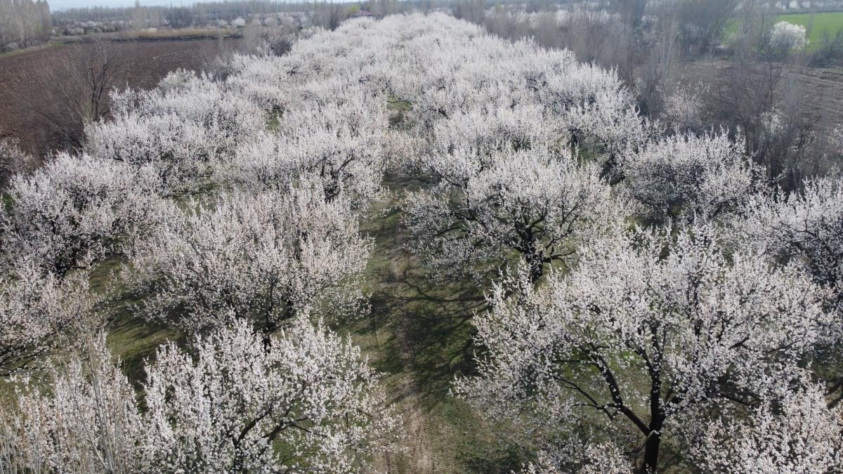 Iğdır’da bulunan kayısı bahçeleri beyaz gelinliğini giyerken ortaya kartpostallık görüntüler çıktı.