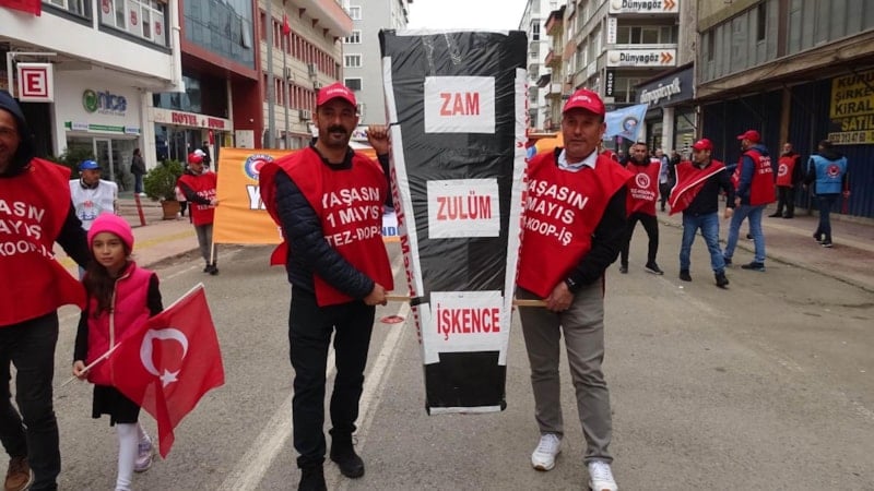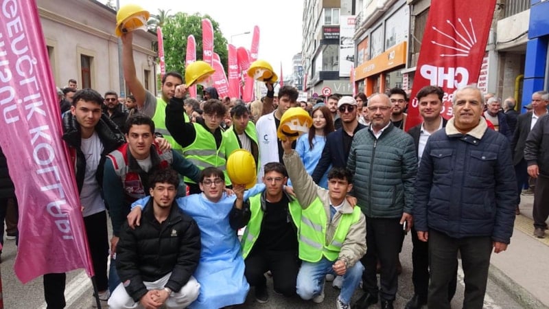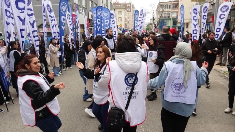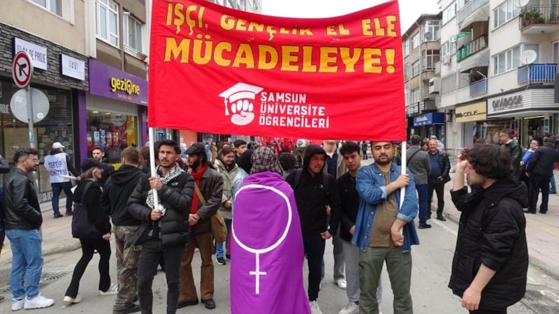Samsun’da Tertip Komitesi’nce düzenlenen 1 Mayıs Emek ve Dayanışma Günü etkinlikleri için katılımcılar, Cumhuriyet Caddesi üzerinde bir araya geldi.