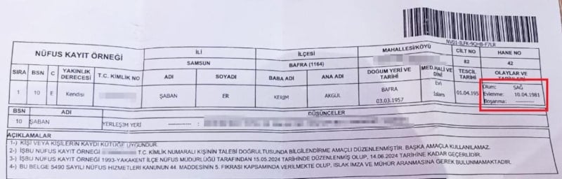 Yapılan yanlıştan dönüldü ve Şaban Er, 12 gün sonra Nüfus Müdürlüğü'nden ‘sağ’ olduğuna dair belge aldı.