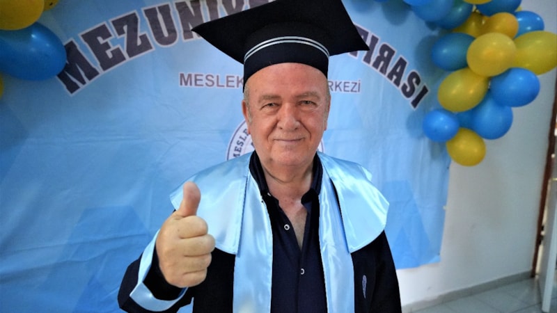 Meslek Eğitim Merkezi'ne giderek liseden mezun olan 71 yaşındaki Muhammet Atalar, “Liseden mezun olmak benim 55 yıllık bir hayalimdi. Çok memnunum. Öyle bir eğitim kadrosunu yakaladık ki, çok mutlu oldum. Hayalim gerçekleşti. Benim başka bir hedefim yok. Lise mezunu olmak içimde ukde kalmıştı. Öğretmenlerimin sayesinde onu da oldum. Gençlerin ufku açık olsun. Benim üniversite hayalim yok ama onların olsun. Daha ileri gitmemiz lazım. Okumamız lazım. Mühendis, doktor yetiştirmemiz lazım. Benim şu an 55 yıllık hayalim gerçek oldu.” dedi.