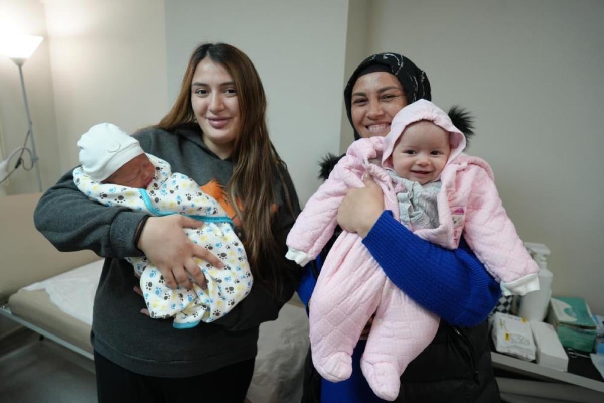 İlk olarak doğum yapan anne Ebru Salacak 3. çocuğu Melina isimli kız bebeğini, kızı Melek Doğanay ise Kuzey isimli ilk bebeğini kucağına aldı.
