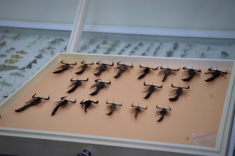Arıdan çekirgeye, akrepten çıyana kadar çevreden toplanan böcekler ve akrabaları, Bitki Koruma Bölümü'nde bulunan özel bir odada kutular içinde muhafaza ediliyor.