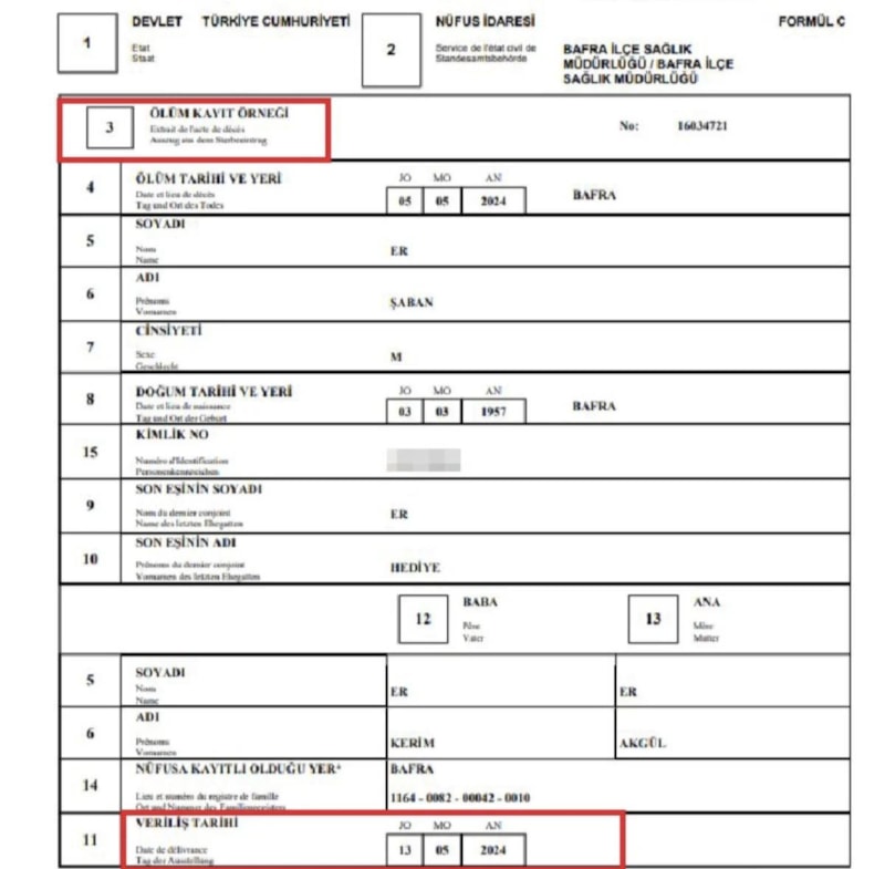 Ölüm raporu hazırlanırken yanlışlık yapıldı