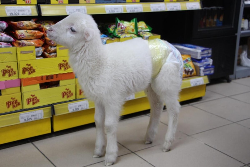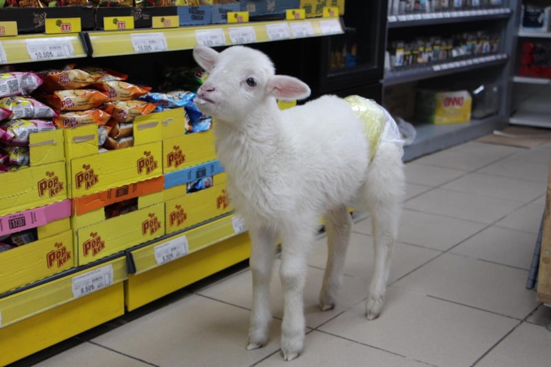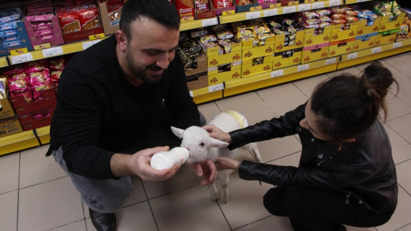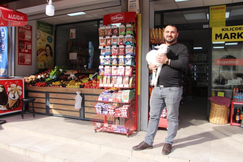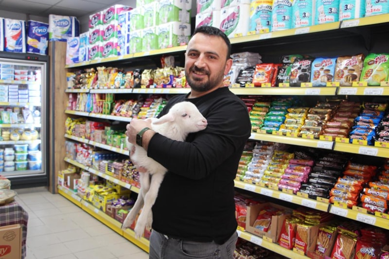 Alışverişten ziyade, kuzuyu sevmeye gelen çok. Şehir merkezinde bir markette kuzu görenler şaşırıyor.