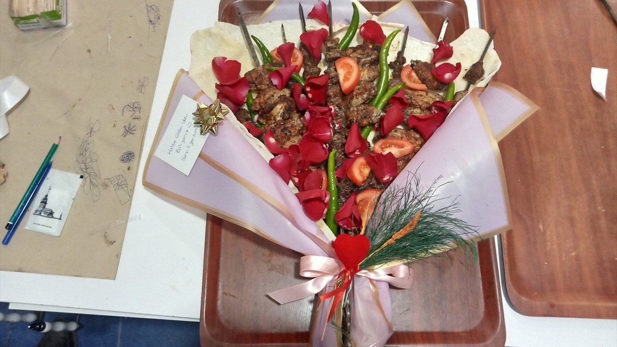 İlk kez böyle bir istekle karşılaştığını belirten Boz, "Müşterim et ve tavuk ızgaradan oluşan bir buket siparişi verdi. Biz de bunun üzerine ızgara buketini hazırladık ve güzel oldu. İnsanın kalbine giden yol midesinden geçer. Afiyet olsun." diye konuştu.