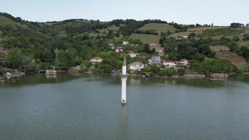 Yıllar önce baraj yapımı için köy sular altında kaldı. 200 binanın sulara tamamen gömüldüğü barajda caminin minaresi yükselmeye devam ediyor. Turistlerin ilgi gösterdiği manzara fotoğraf tutkunlarının gözdesi haline geldi.