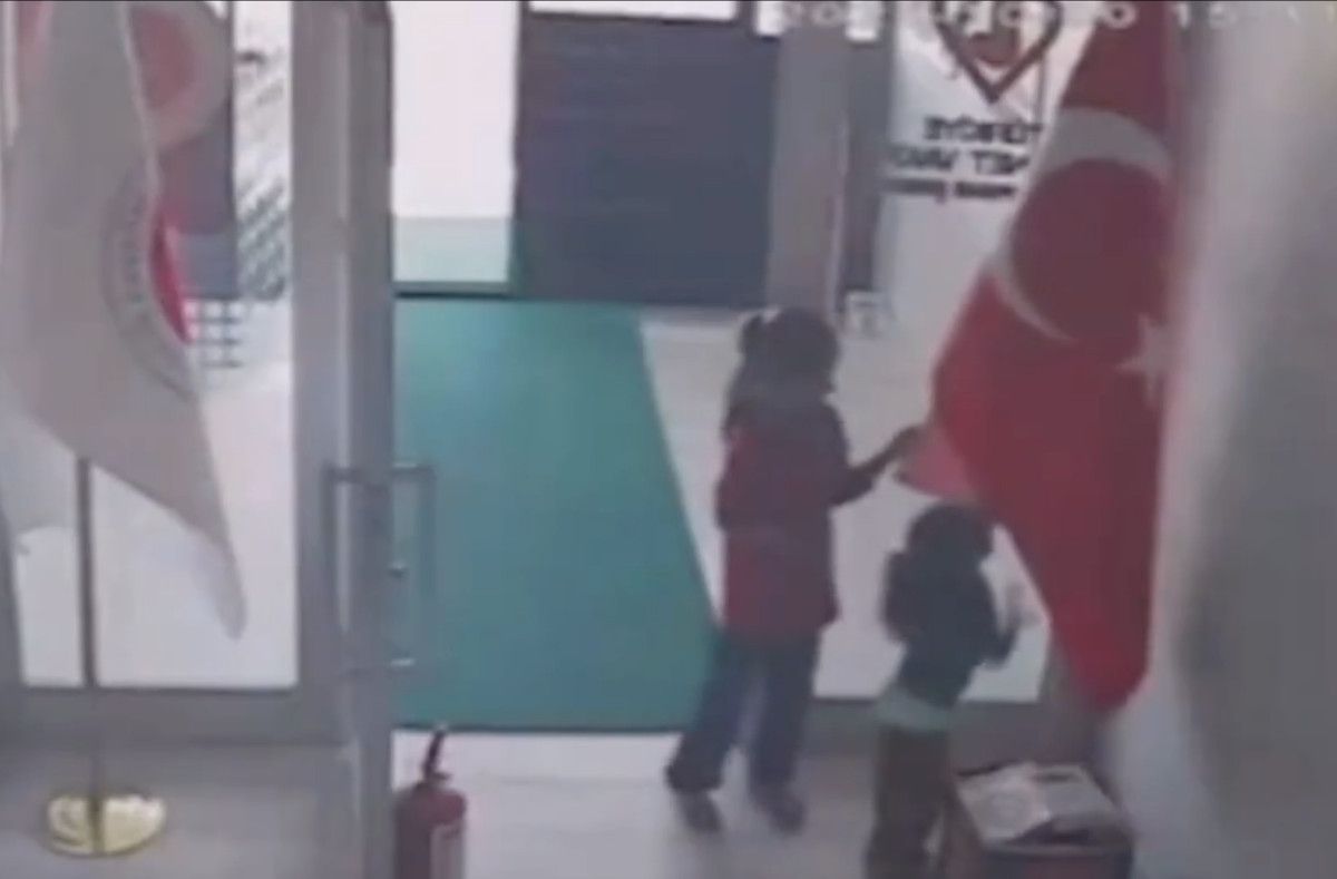 - Şanlıurfa'da müftülük binasına gelen Dilek ve Reyhan kardeşler, güvenlik kamerasına yansıyan görüntülerde Türk bayrağını öptüler.