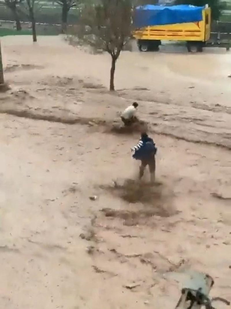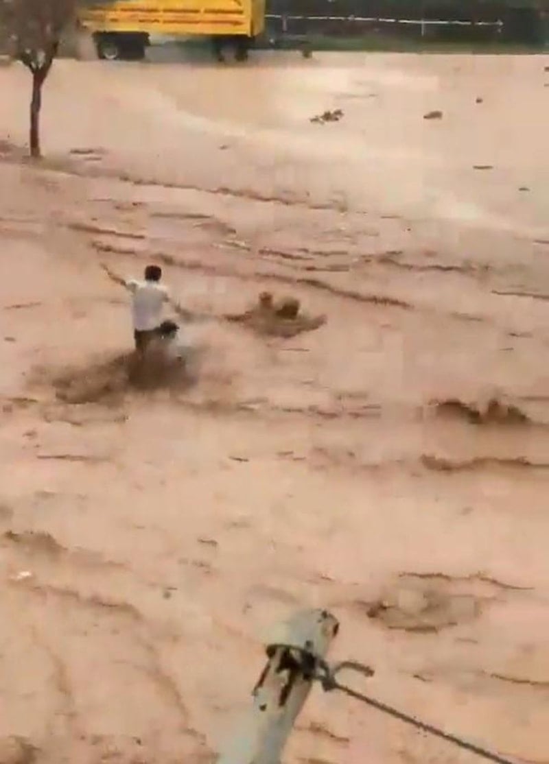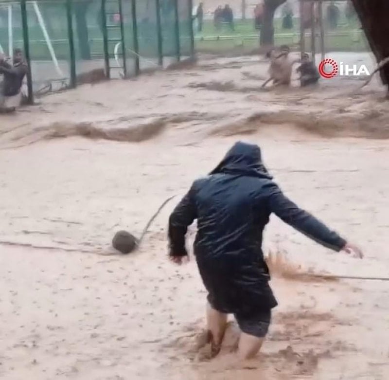 Su altında kalan yollar nedeniyle ulaşım sağlanamazken, sel sularında insanlar ve araçlar sürüklendi.