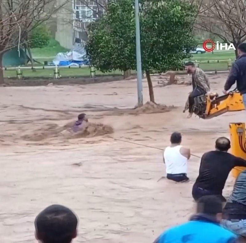 Şanlıurfa'yı vuran sel felaketinde suların sürüklediği insanlar, çevredeki vatandaşlar tarafından kurtarıldı.