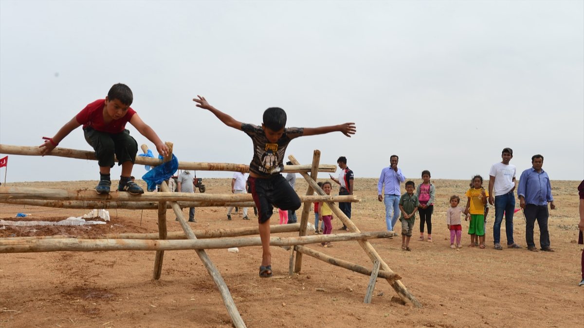 Şanlıurfa Harran'da çocuklar, kendi imkanlarıyla kurdukları Survivor parkurunda yarışmalar düzenledi.