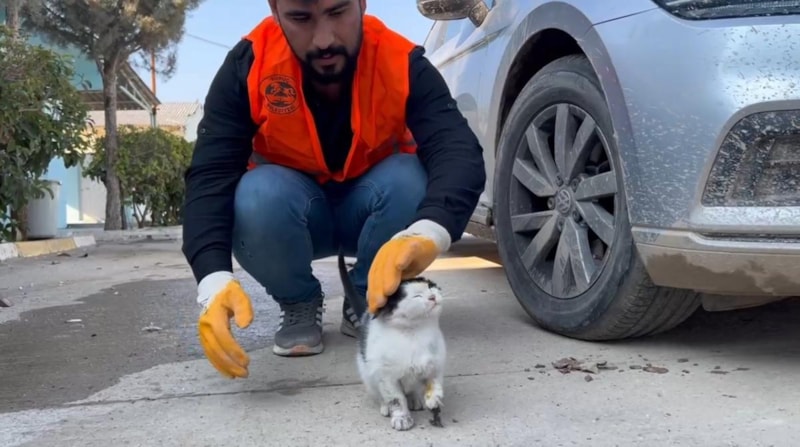 Sağlık ekiplerinin ilk müdahaleyi burada yaptığı yavru kedi, çağrılan belediye ekiplerine teslim edildi.