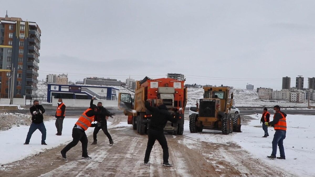 Yolları açan ekipler, ardından kar topu oynayarak eğlendi. Renkli görüntüler yaşanırken işçiler, uzun süre birbirleriyle şakalaştı.