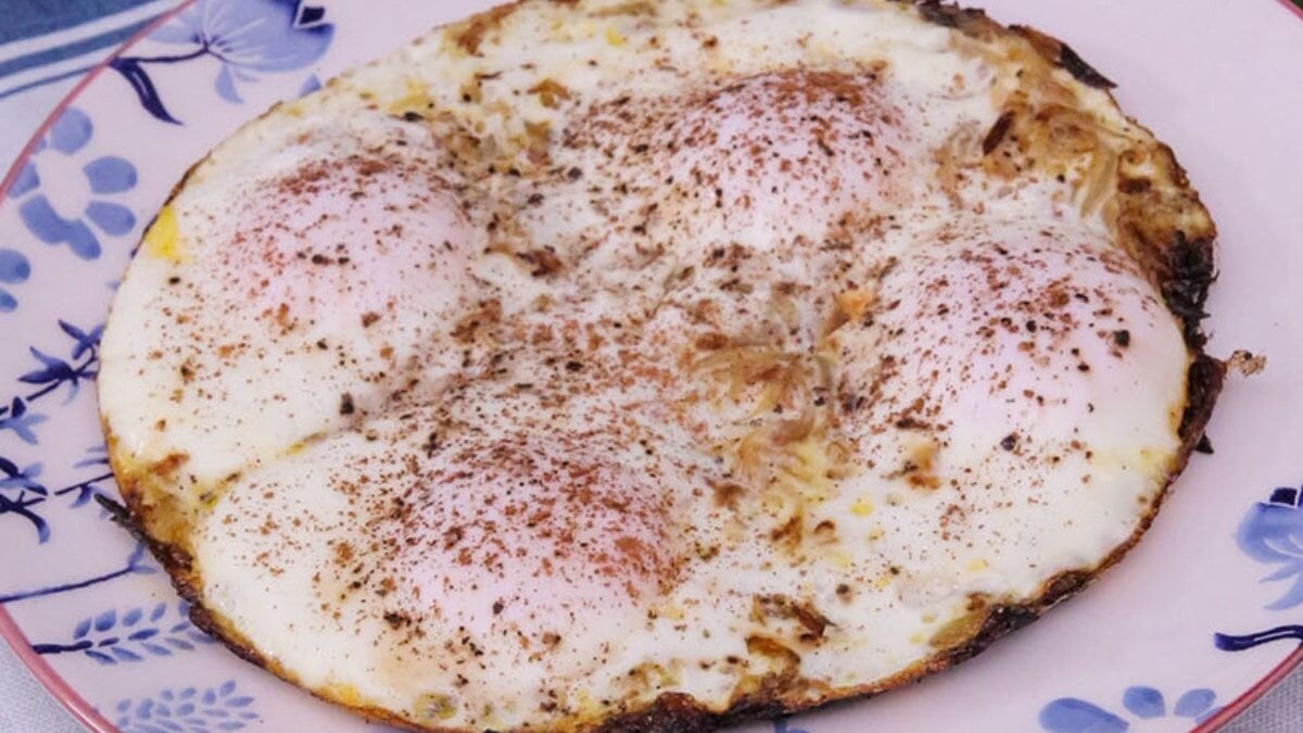Yumurtaları soğanların üzerine kırın. Tuz, karabiber ayarını yapıp kapağını kapatın. Unutmayın sarılar katılacak, beyazlar hafif sulu kalacak. İstenilen kıvama gelen yumurtayı tabağa alın ve üzerine tarçın serperek sıcak olarak servis edin.