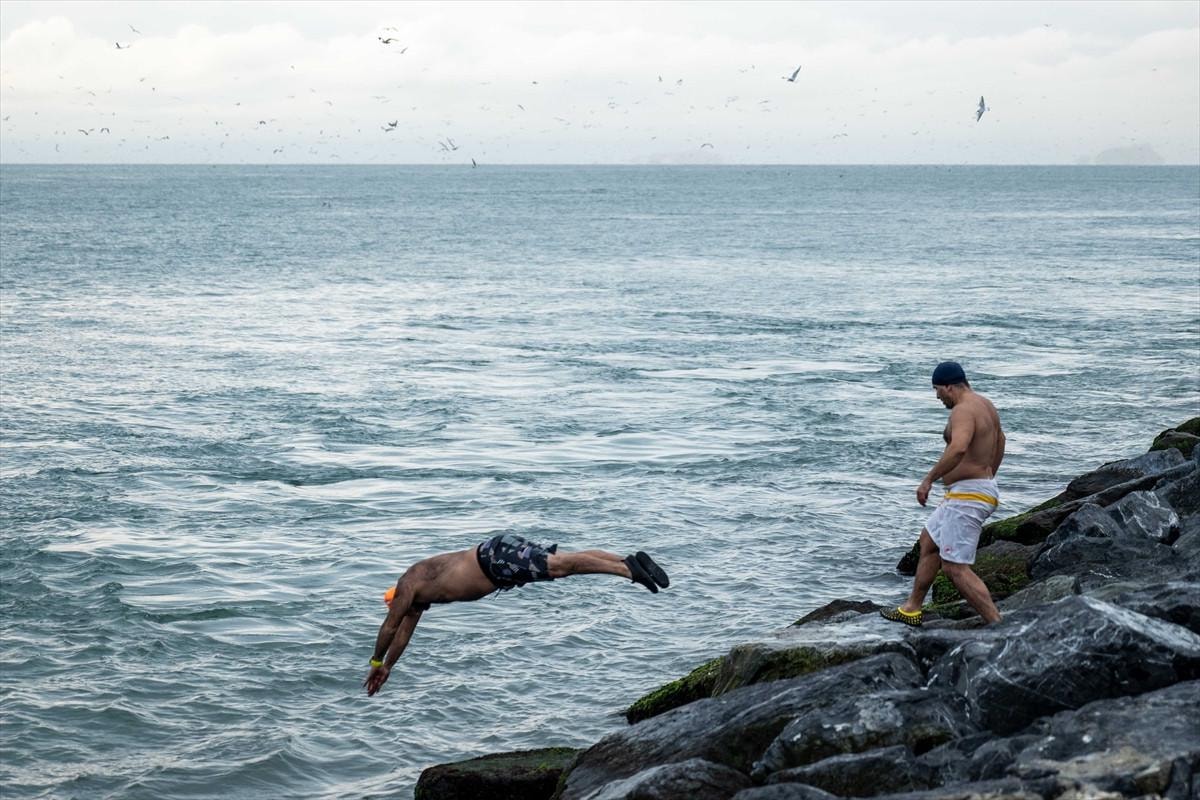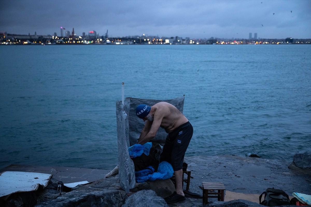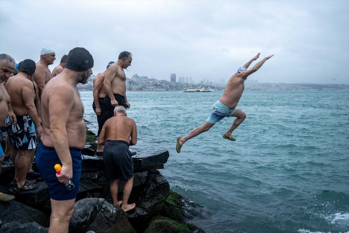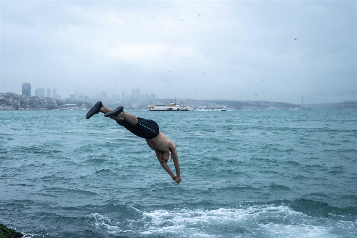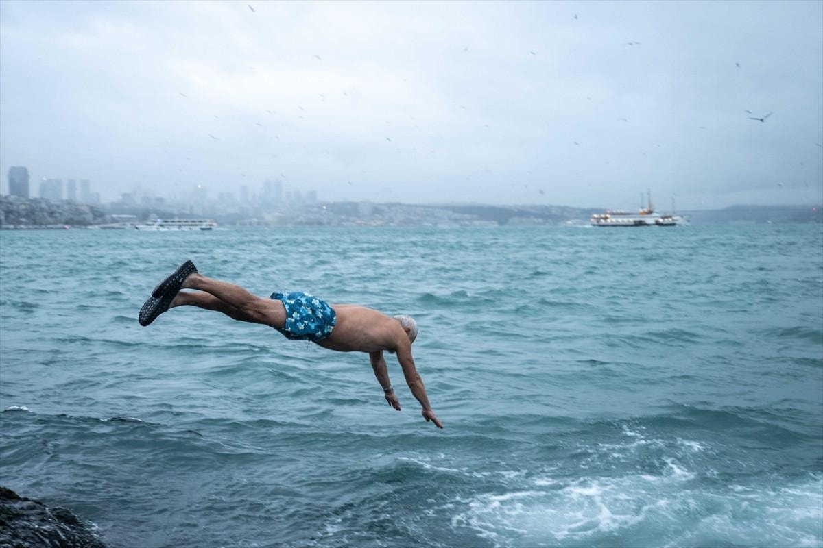 Daha sonra Gülhane Parkı'nın önündeki sahilden Boğaz'ın soğuk sularına atlayan grupta yer alan Hüseyin Kahraman, AA muhabirine, her gün denize girdiklerini söyledi.