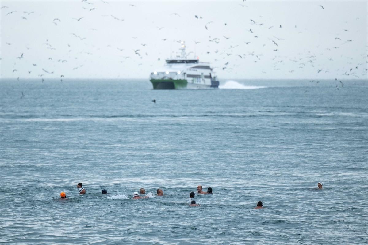 Yaklaşık 20 yıldır yaz-kış demeden denize giren "Sarayburnu Fatihleri", senenin son gününde de İstanbul Boğazı'nda kulaç attı.