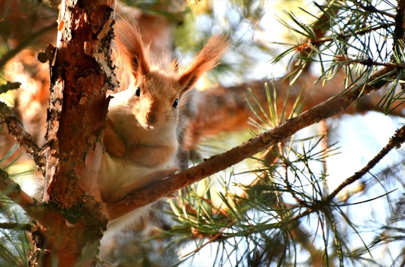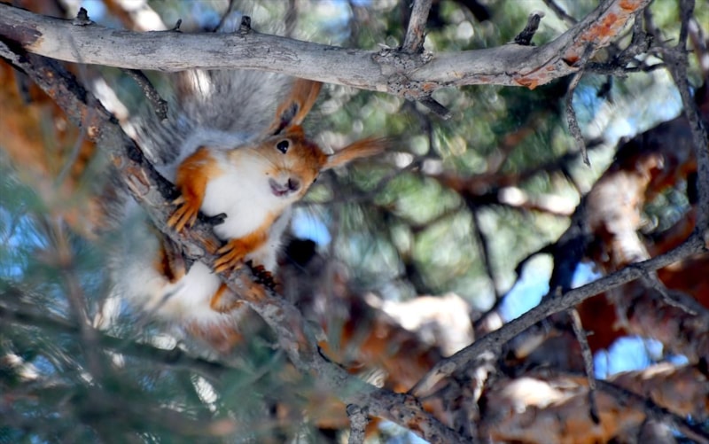 İlkbaharın habercisi güneşle birlikte kızıl sincaplar ağaç dallarında boy gösterdi. Ziyaretçilerin yürüyüş yaptığı, soluklandığı, bazen sadece kuş seslerini dinlemek için oturduğu bu doğal alanda, sincapların kozalak kemirerek daldan dala atlaması izleyenlere huzurlu anlar yaşattı.
