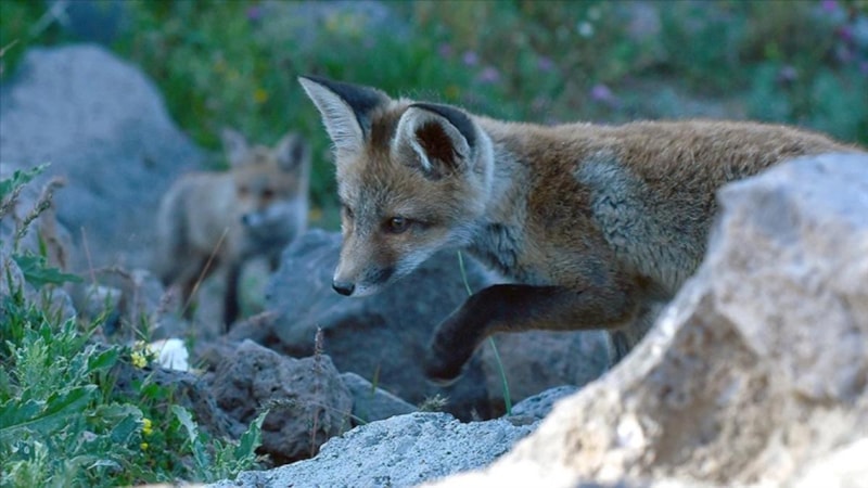 Kış aylarında karla kaplı arazilerde avlanan, bahar aylarında ise yavrulayan tilkiler, özellikle nisan ve mayıs döneminde yiyecek bulmakta zorlandıklarında yerleşim yerlerinin yakınlarına kadar inebiliyor. Bu dönemde yuvadan çıkmaya başlayan yavru tilkiler de, annelerini beklerken çevrede yiyecek arayışına giriyor.