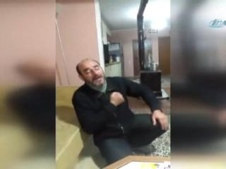Amatör kamera tarafından kaydedilen görüntülerde, bir adam evinde oturmuş içli içli şarkı söylüyor. Şarkıya kendini kaptıran adamın takma dişleri ağzından birden fırlıyor.