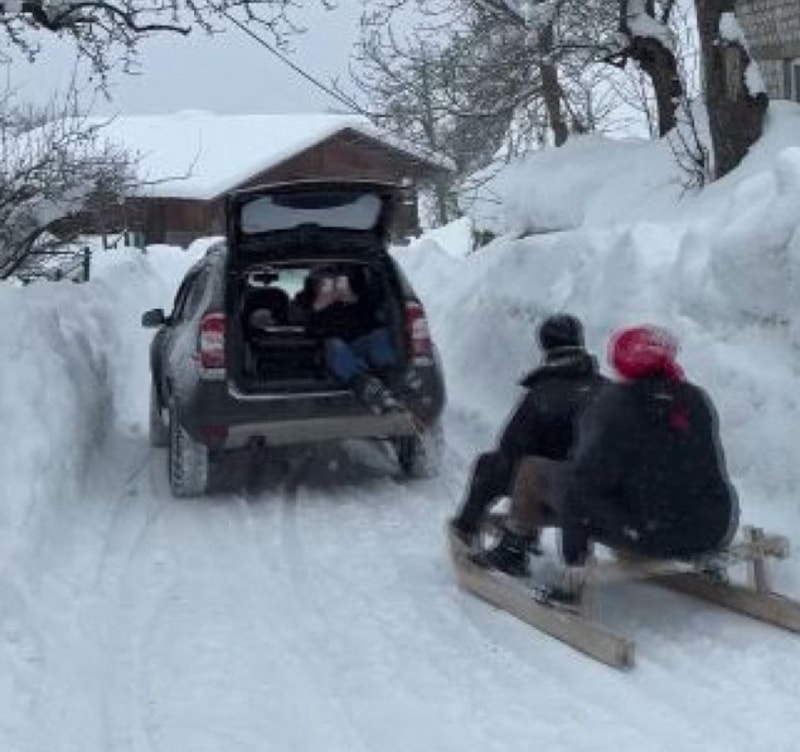 Demirci köyünde ise köylüler, tahta kızaklarını araçların arkasına halat yardımıyla bağlayarak köy yolunda gezinti yaptı. Ortaya çıkan renkli ve neşeli anlar cep telefonu kameralarıyla kaydedilirken, kızak keyfi köyde adeta şenlik havası estirdi.