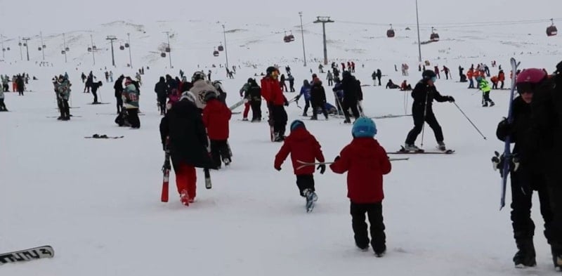 Türkiye'nin önemli kış turizmi merkezlerinden biri Erciyes Kayak Merkezi'nde, okulların ara tatile girmesiyle yoğunluk yaşanıyor.