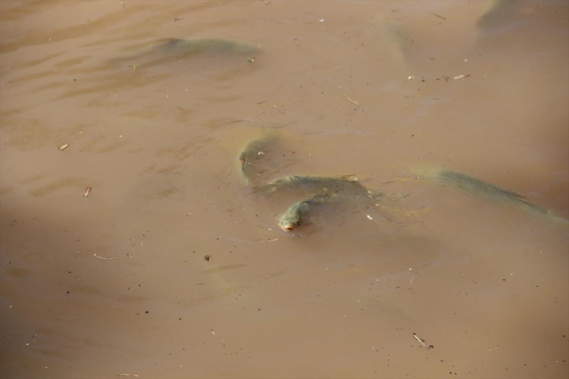 Sel sularıyla birlikte çamurla kaplanan tarihi yerde balıklar tekrar yüzünü gösterdi.