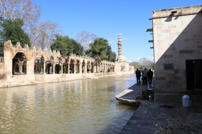 Şanlıurfa'da turistlerin en uğrak yeri olan Balıklıgöl'de selin yaraları sarılıyor.