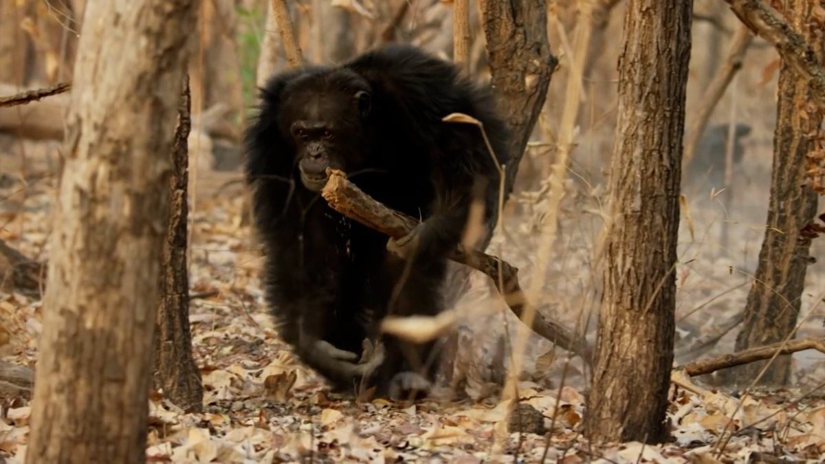 Şempanzelerin taşlı sopalı çiftleşme kavgası kamerada