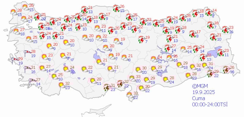 Meteoroloji Genel Müdürlüğü yapmış olduğu son hava durumu raporunda, perşembe ve cuma günü 31 ilde gök gürültülü sağanak yağış beklendiğini açıkladı.