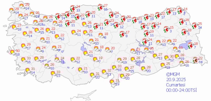 Meteoroloji Genel Müdürlüğü, son hava durumu raporunu yayınladı. Yayınlanan rapora göre; rüzgarın ise hızı saatte 50 km'yi bulacak ve 31 kentte gök gürültülü sağanak yağış bekleniyor.