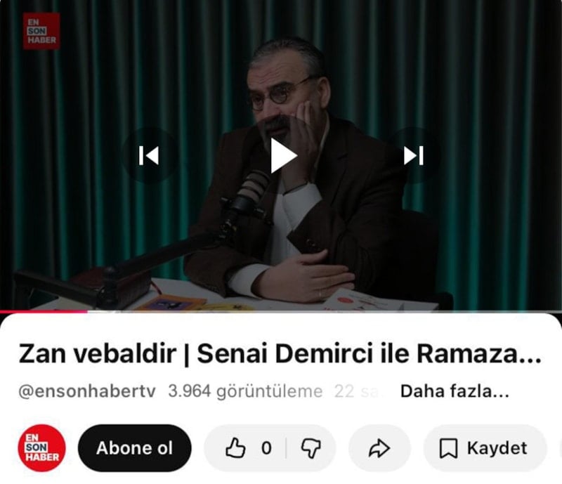 Ensonhaber YouTube kanalında Senai Demirci ile Ramazan’a Dair programı devam ediyor.