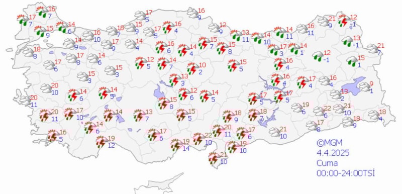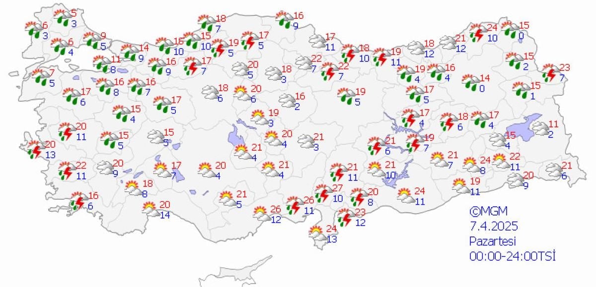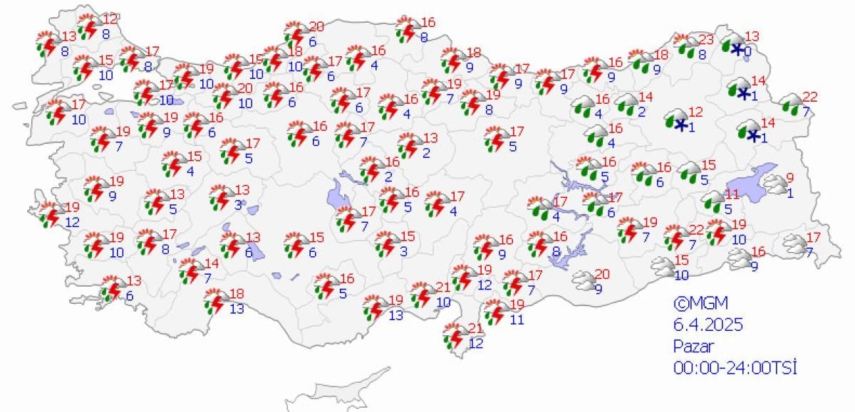 Meteoroloji Genel Müdürlüğü, son hava durumu raporunu yayınladı.