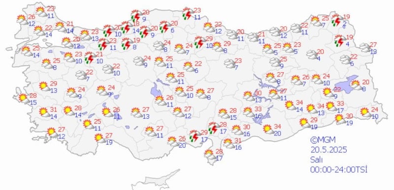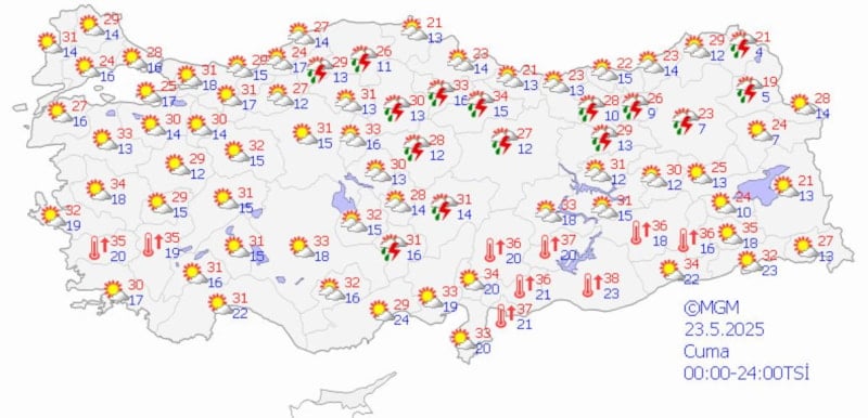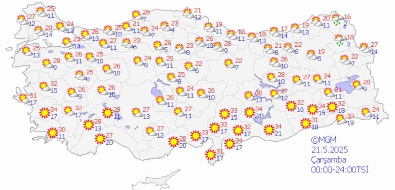 Meteoroloji Genel Müdürlüğü tarafından yapılan tahminlere göre:
