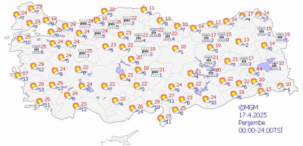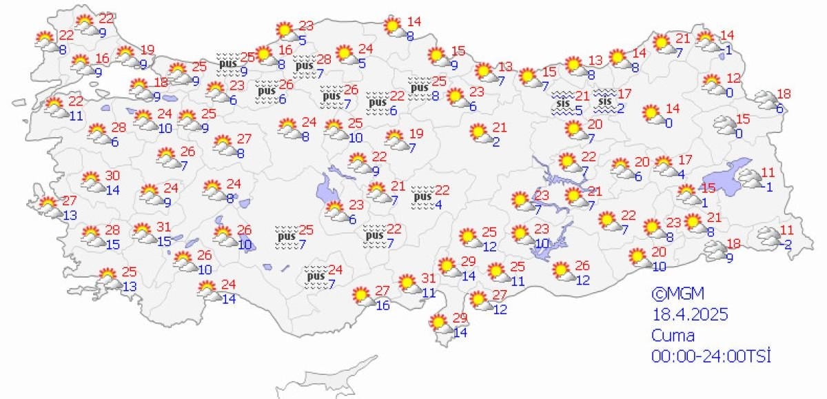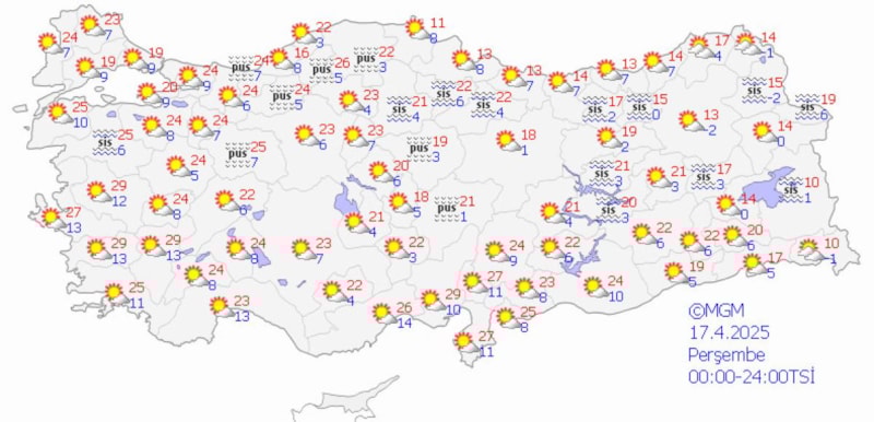 Sabah ve gece saatlerinde kuzey, iç ve doğu kesimlerde pus ve yer yer sis bekleniyor.