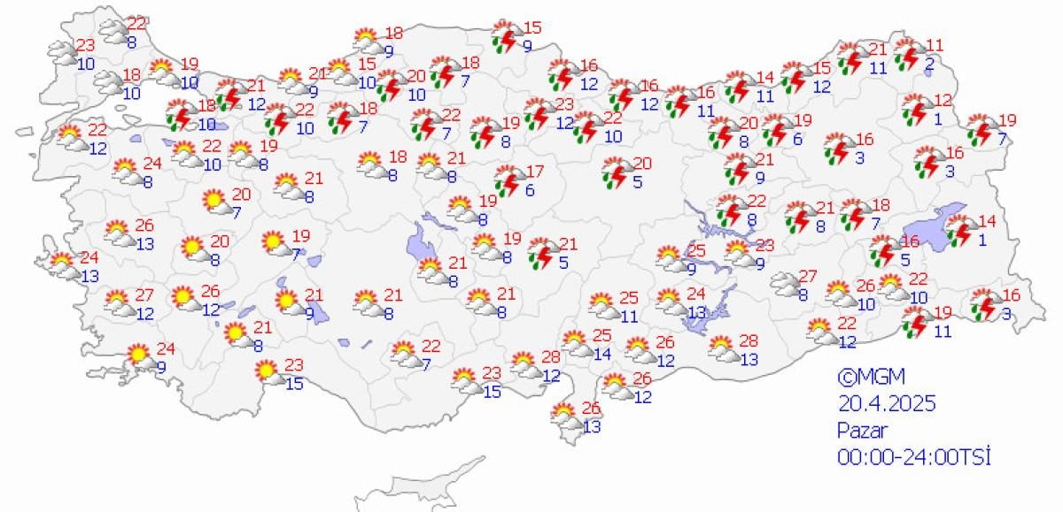 Meteoroloji Genel Müdürlüğü, son hava durumu raporunu yayınladı.