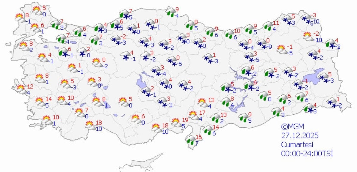 - Hafta sonu birçok bölgede kar yağışı beklenirken, hava sıcaklıklarının mevsim normallerinin altına düşeceği belirtildi.